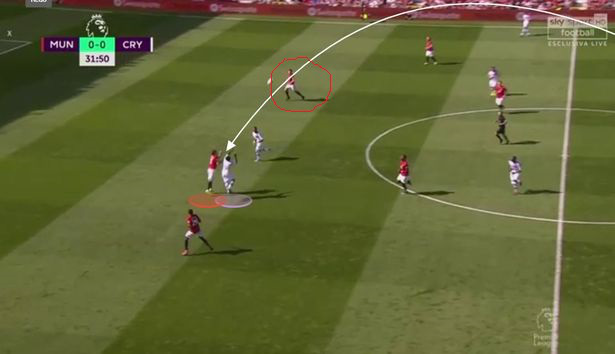 Anh "tà tà đi bộ" trong một pha bóng mà Crystal Palace có hai cầu thủ tấn công vây bọc đồng đội Victor Lindelof. Kết quả là đội khách có bàn thắng.